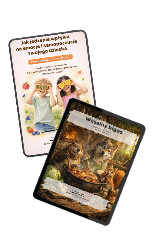 Ajurwedyjską Bajkę Terapeutyczną Weselny bigos i Przewodnik dla Rodziców – Jak jedzenie wpływa na emocje i samopoczucie Twojego dziecka kupisz TUTAJ